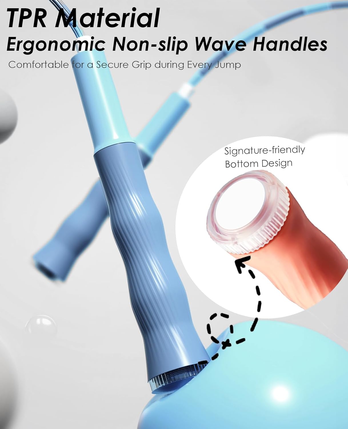 - Ergonomic Non-Slip Handles: Designed for ultimate comfort and grip, our workout jump rope features ergonomic, non-slip handles made from durable TPR material. TPR combines the flexibility of rubber with the toughness of plastic, providing a soft, wave-textured grip that ensures a secure hold during every jump, preventing any slipping or discomfort. This makes it ideal for active workouts. You can jump, skip, and play without worry!