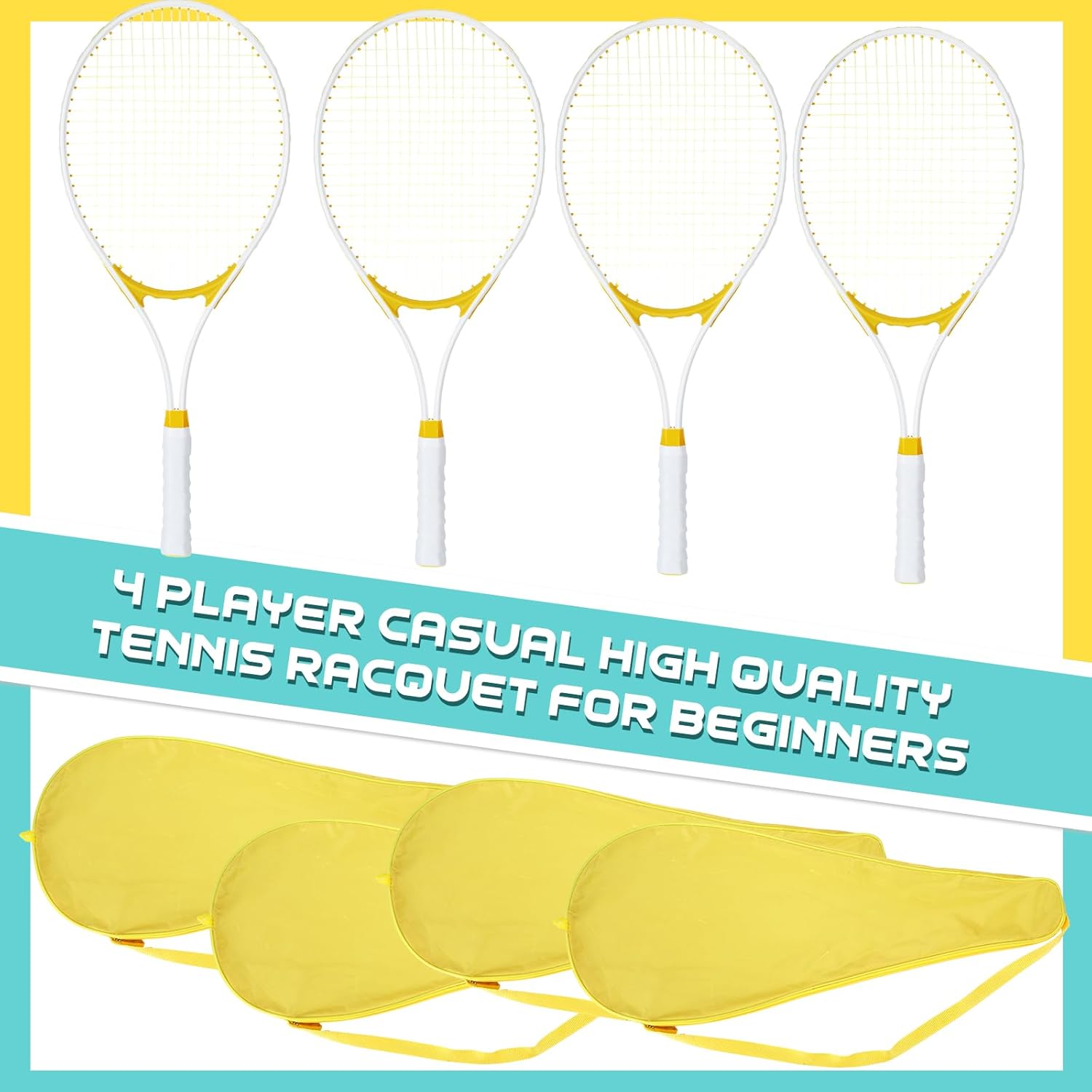 - Package Includes: you will get 4 pieces of 27 inch tennis rackets, along with 4 pieces of yellow overgrips and 4 pieces of carry bags, enough quantity to meet your practical and replacement needs, you can share these tennis rackets with your friends and family