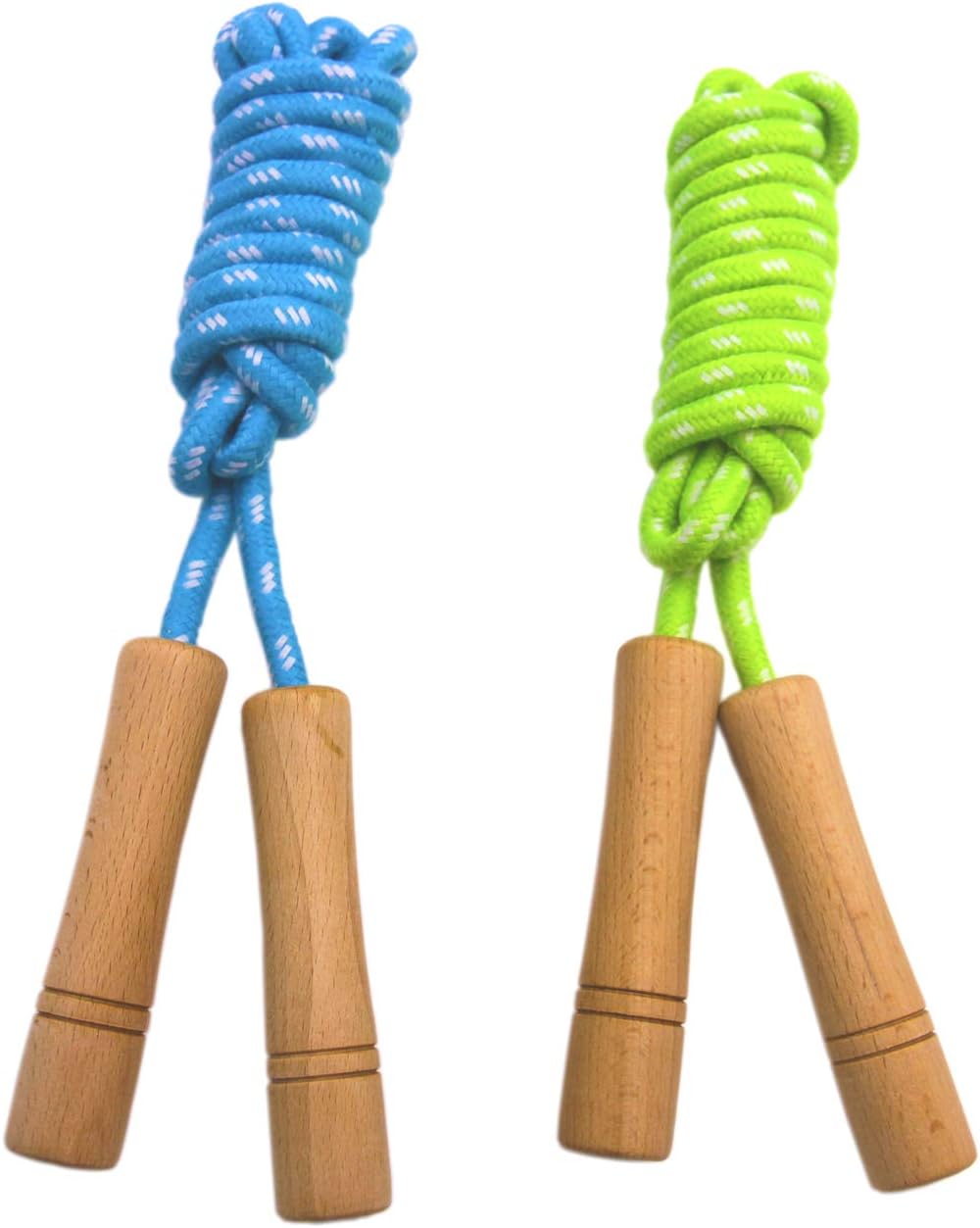 Cotton Jump Rope for Kids - Wooden Handle - Adjustable Cotton Braided Fitness Skipping Rope - Outdoor Fun Activity, Great Party Favor, Exercise Activity, Pack of 2