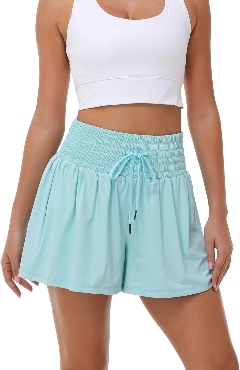 Flowy Athletic Shorts for Women Gym Workout Running Lounge Pants High Waist with Pocket Cute Clothes Summer Outfits