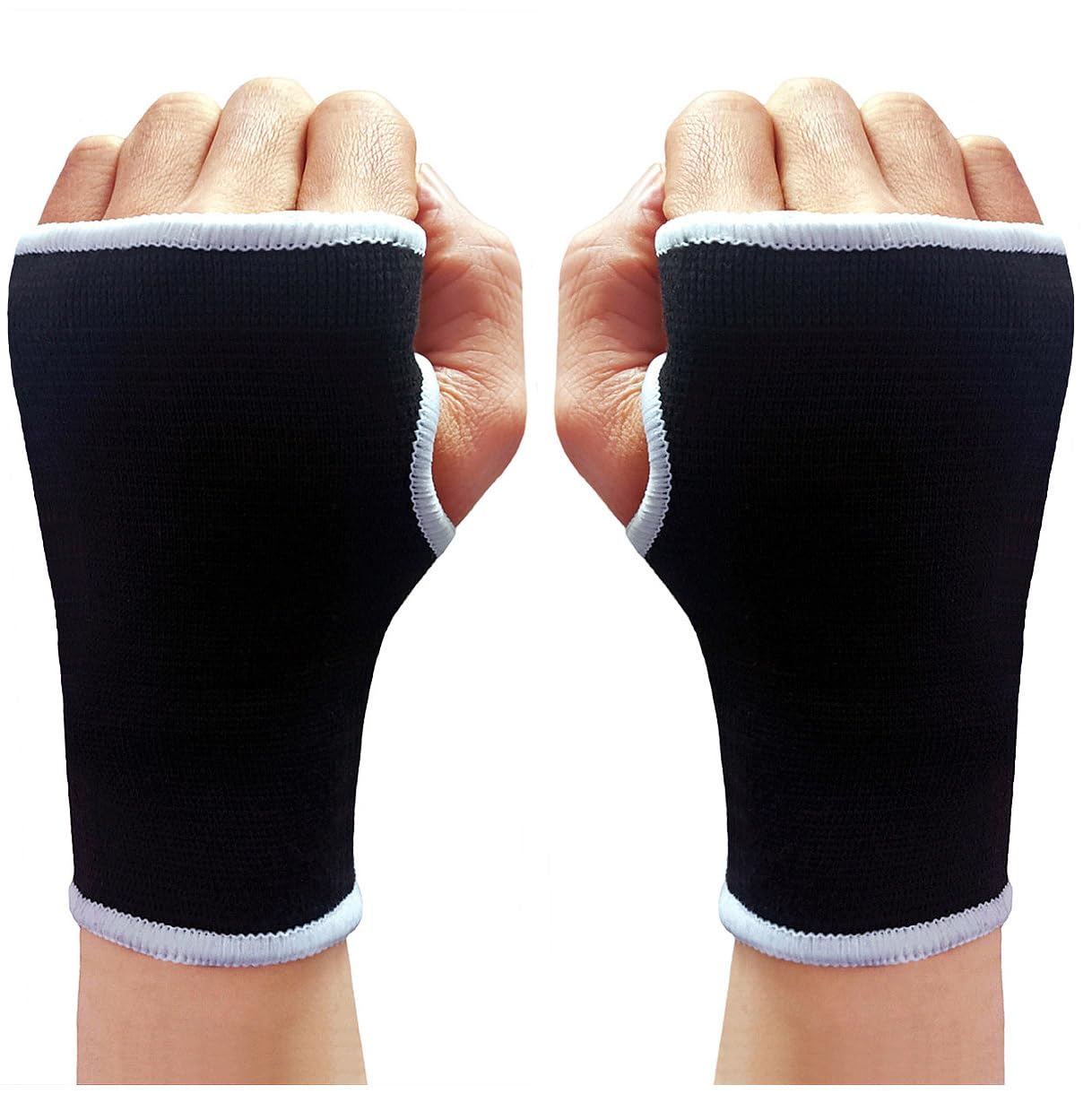 Palm Brace Wrist Support Sleeves (1 Pair), Everyday Use Wrist Brace, Compression Carpal Tunnel for Wrist Pain Relief, Fitness Gloves, Glove, Wrist Brace for Men and Women (White edged Black)
