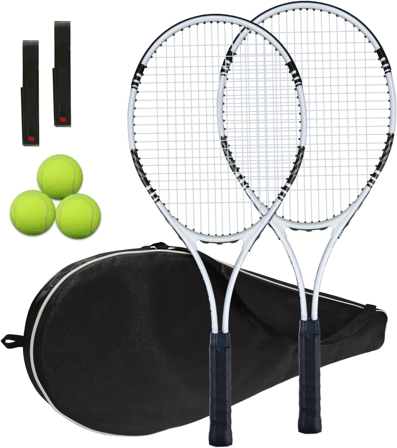 - ✅ COMPLETE PACKAGE – The prestrung tennis set includes 2-pack rackets,1 carrying cover bag, 2 comfortable overgrips for optimal handling, and 3 tennis balls for immediate play.