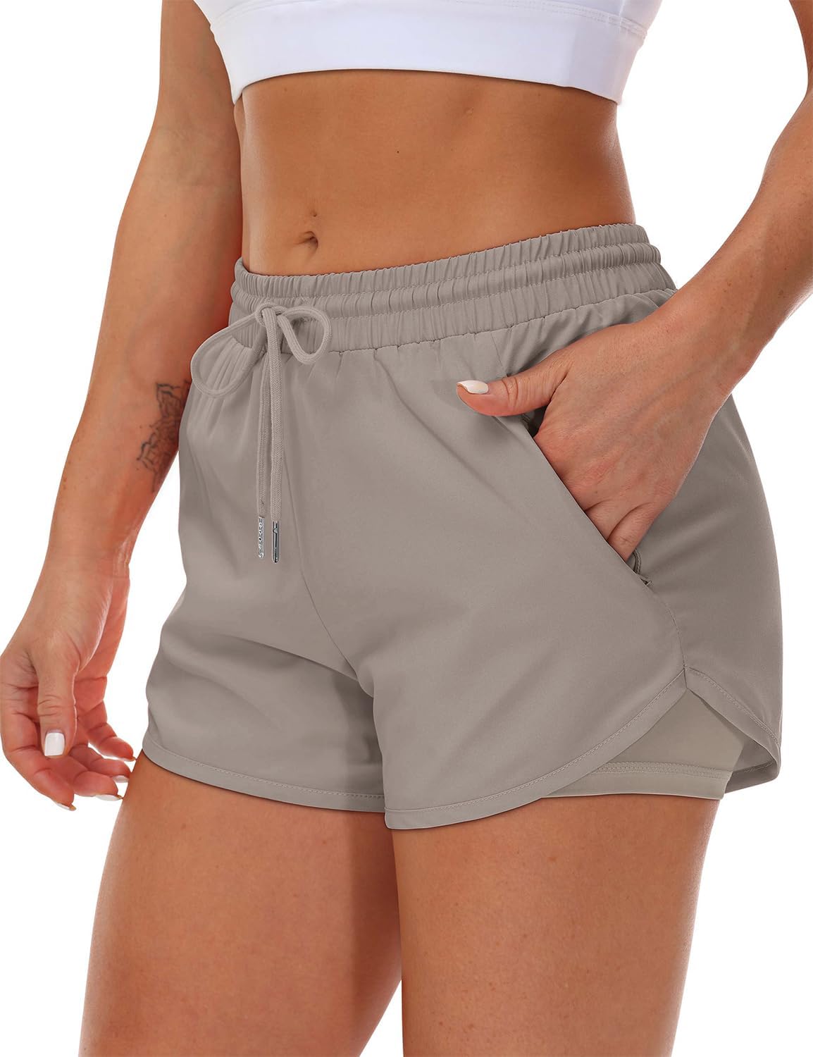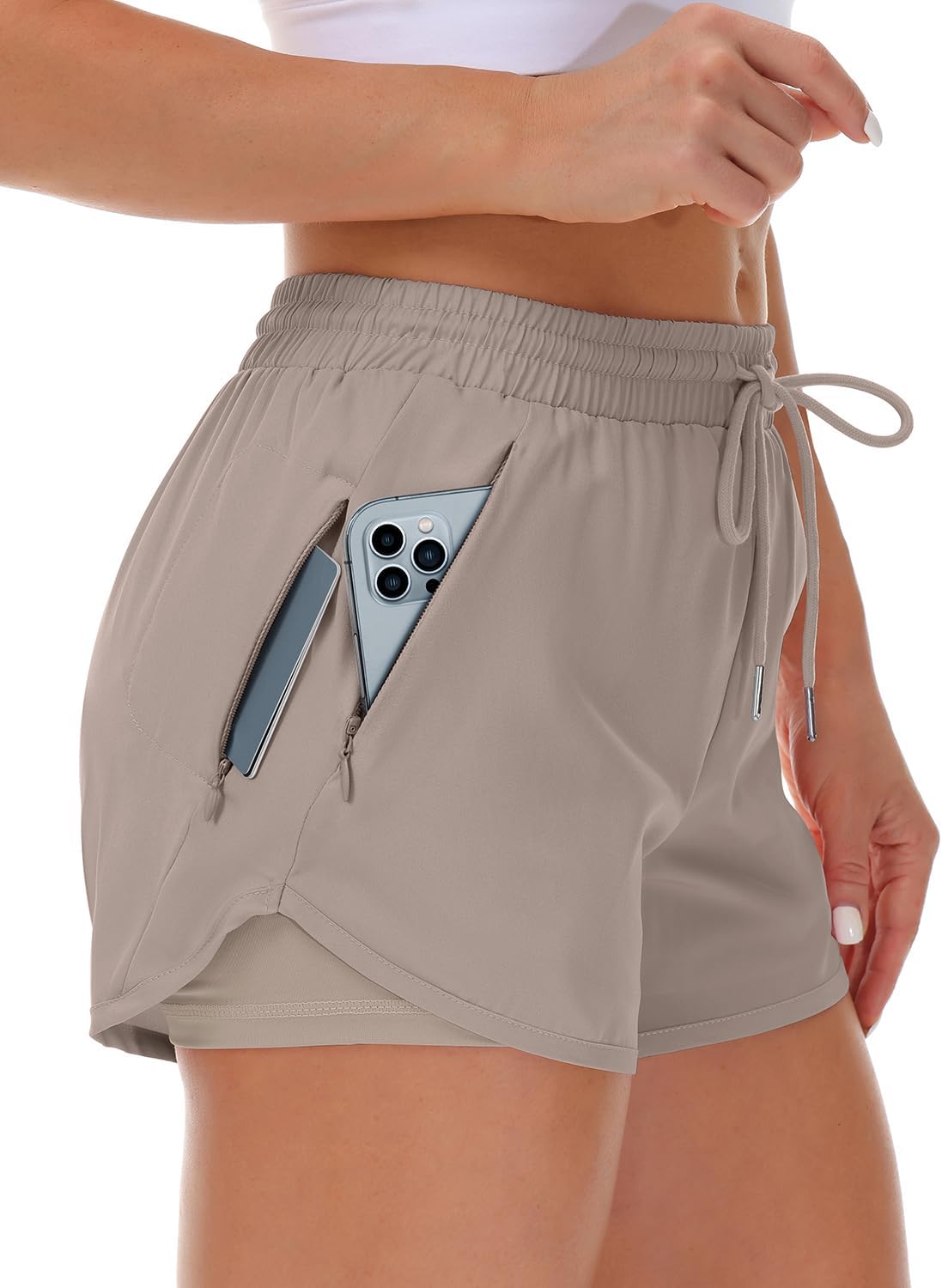 Women's Running Shorts with Liner 3 Zipper Pockets Elastic Workout Athletic Gym Yoga Shorts